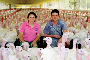 Jéssica Zanini e o noivo Moisés Gavineski mantém uma granja com quatro galpões para a criação de perus no interior de Vespasiano Corrêa