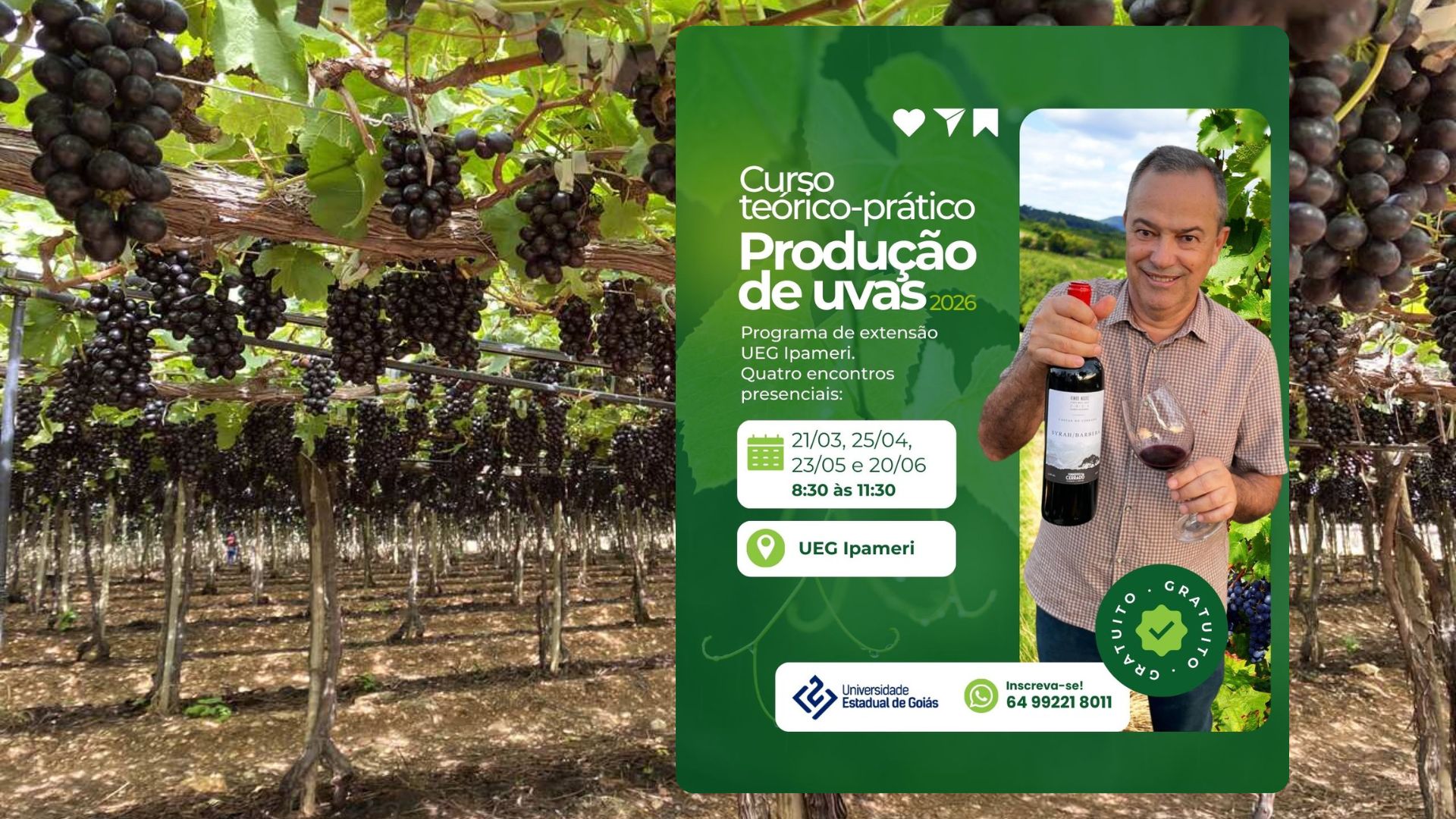 A expansão da viticultura para novas regiões do Brasil tem impulsionado iniciativas de formação técnica voltadas ao cultivo da videira fora dos polos tradicionais de produção. Em Goiás, a Universidade Estadual de Goiás (UEG), campus Ipameri, promove em 2026 um curso teórico-prático de produção de uvas voltado à capacitação de produtores, técnicos e estudantes interessados na viticultura no Cerrado.