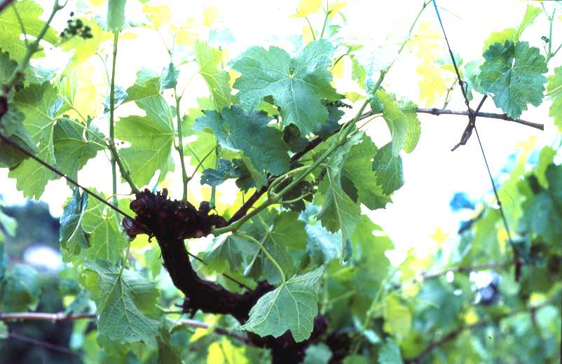ter acontecido a quebra de ápices de ramos. Com isso, poderá haver um maior estímulo à emissão de novas feminelas, vindo a ser necessário realizar um desbaste e condução adequada dessas novas brotações, para evitar excesso de sombreamento no período de maturação da uva. Também é importante que os ramos quebrados sejam retirados imediatamente do dossel para evitar barreiras físicas aos tratamentos. Deve haver, ainda, atenção às lesões que o granizo causou nos ramos do ano, pois elas podem comprometer a fertilidade de gemas do ciclo seguinte. Neste caso, nas áreas que foram muito afetadas, deve-se ter o cuidado de selecionar ramos/gemas adequados no momento da poda de inverno no ciclo seguinte. Nos casos em que houve a supressão total da produção, com muito dano nos ramos do ano, é necessário que o viticultor realize uma poda verde mais drástica, para que ocorra a emissão de novos brotos, com a intenção de formar ramos/gemas produtivas para o ciclo seguinte.