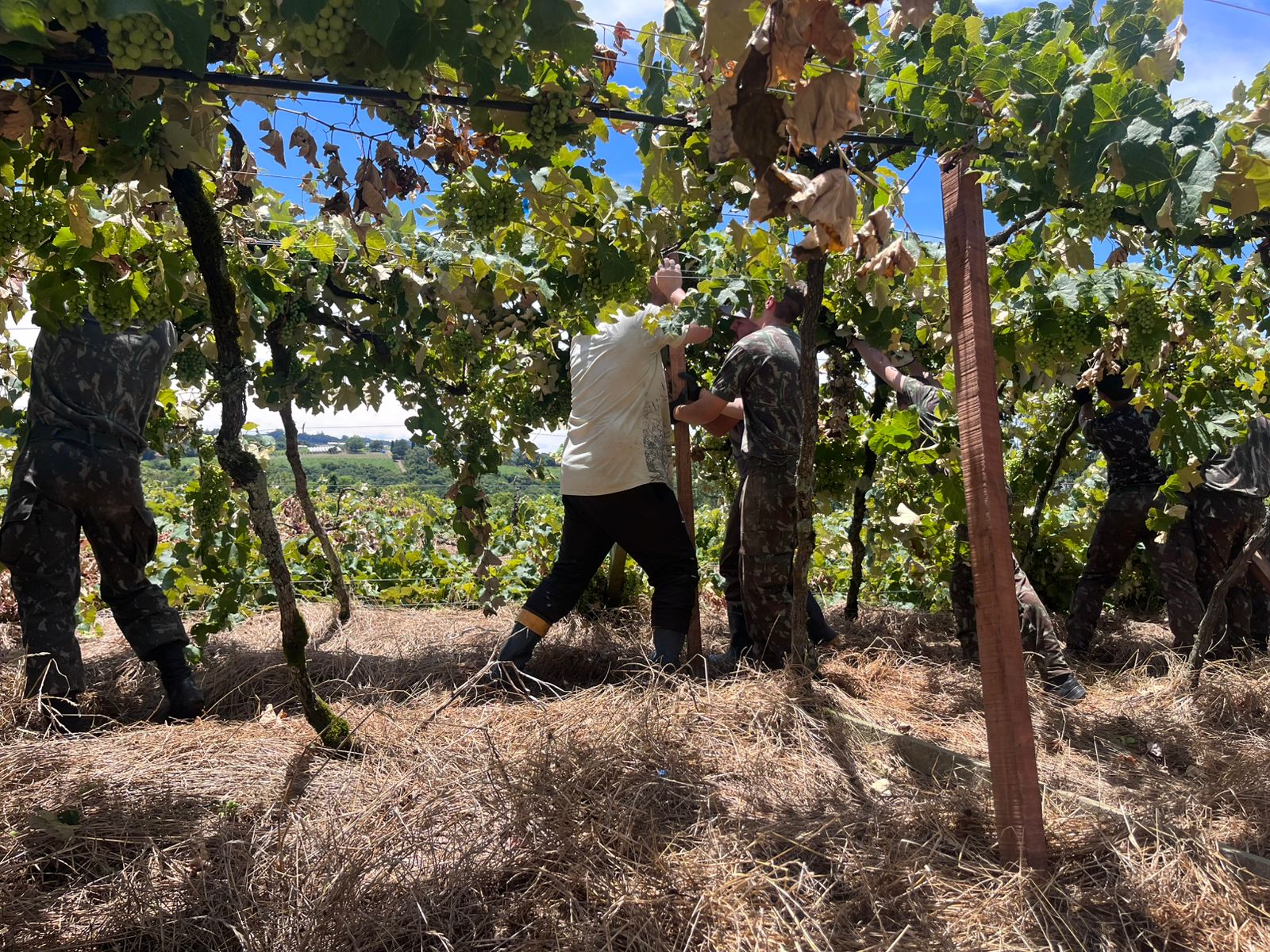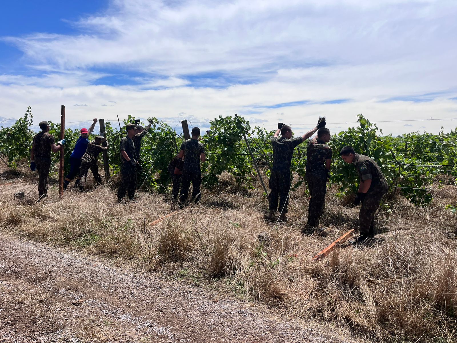 Antes da chegada do Exército, o setor enfrentava um cenário crítico. Apesar da solidariedade entre produtores, cooperativas e comunidades vizinhas, a falta de mão de obra especializada colocava em risco o reerguimento rápido dos parreirais, aumentando a exposição das plantas a doenças, quebra estrutural e perda de vigor.