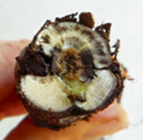 Grohs ensina que antes de negociar a mercadoria, o agricultor deve pegar uma amostra da muda e cortar as plantas para verificar se não está contaminada. Segundo ele, o ideal seria que essa verificação fosse feita ainda no viveiro, antes da compra. “Com uma tesoura de poda, ele faz alguns cortes nas raízes e na região do enxerto. Com isso, ele saberá se o material tem alguma infecção fúngica, principalmente por fungo de solo, que é um dos maiores problemas na questão da renovação”, explica o analista. Ele destaca que as infecções são necroses escuras, totalmente anormais para uma planta sadia. “Se for constatada essa contaminação antes do recebimento e do plantio, o produtor tem o direito de devolver esse material. Se ele não fizer isso e plantar essa muda em uma área de renovação, ela não durará um ano”, alerta.