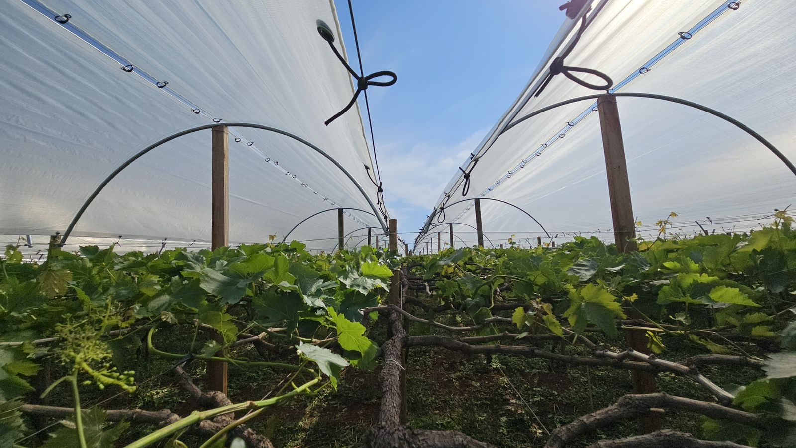 A solução avaliada é a instalação de estruturas de cultivo protegido com lonas de ráfia reforçada, mais resistentes do que os plásticos usados em estufas tradicionais. Elas funcionam como uma “cobertura-escudo”, sendo possível proteger cachos e folhas da chuva, reduzir o período de molhamento — condição essencial para o surgimento de doenças fúngicas — e impedir que partículas de herbicidas atinjam a planta em períodos críticos.