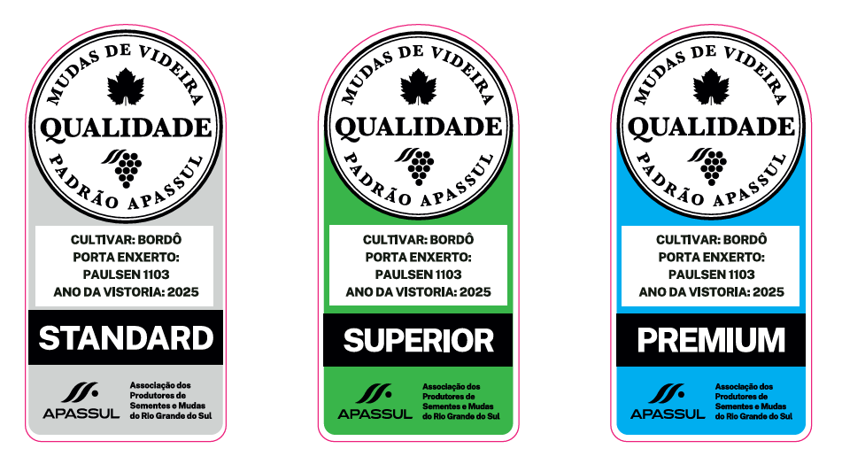A partir de 2025, o novo sistema de classificação de mudas de videira passa a ser operacional, com 53 lotes de mudas de 9 viveiros nos estados do Rio Grande do Sul e Santa Catarina já classificados. Os selos são divididos em duas frentes: